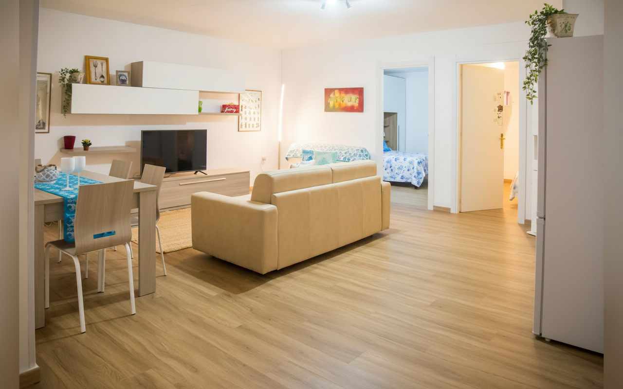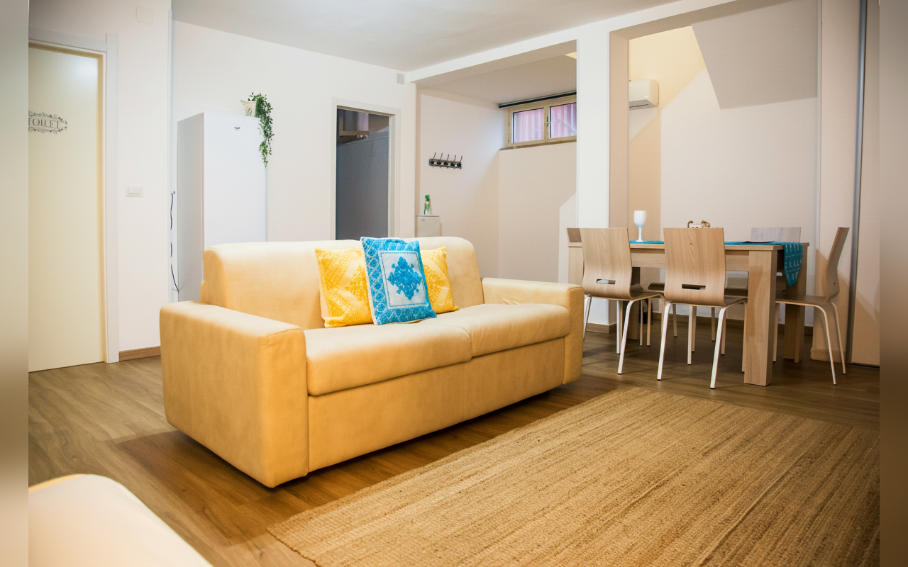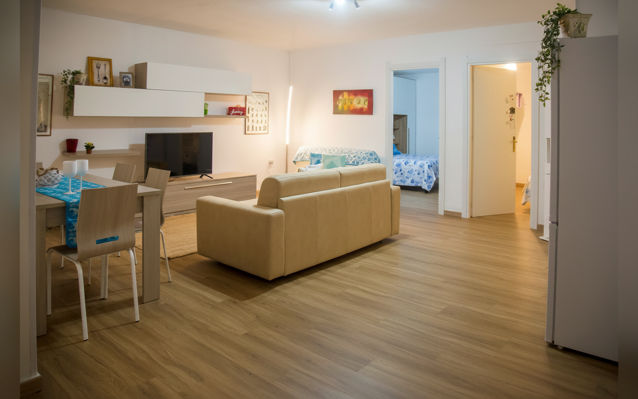 Unità composta da due camere da letto (una matrimoniale alla francese e una con due letti singoli), soggiorno con divano letto e un bagno, ideale per accogliere fino a 6 persone. Spazi confortevoli e funzionali per un soggiorno in totale autonomia e relax.